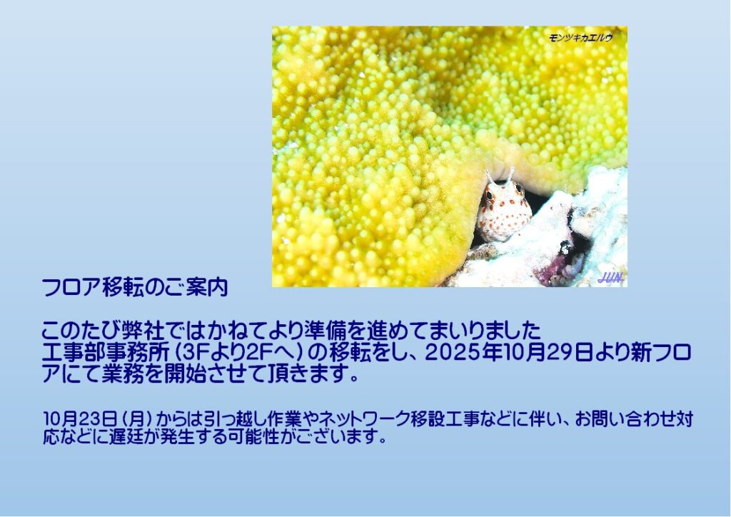 工事部事務所移転(3Fから2Fへ)のご案内