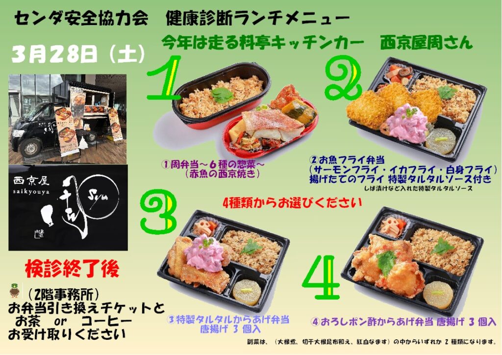 3月28日 センダ安全協力会 健康診断ランチメニュー